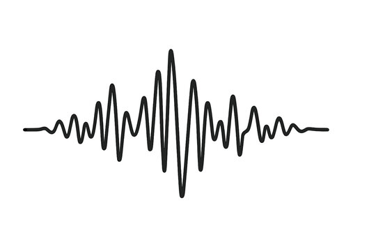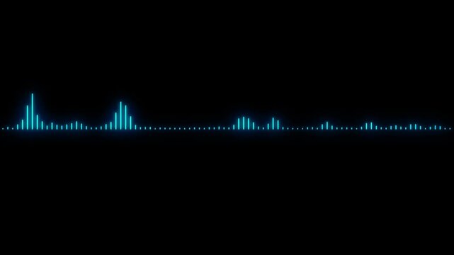Sound line audio wave visualization voice record animation on black background. Sound wave or frequency digital movement. Classic graphic sound equalizer. Sound waves meter- audio waveform spectrum.