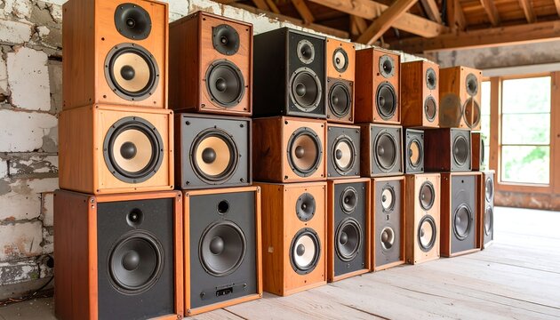 Vintage wooden speakers in a room
