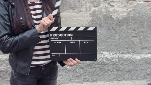Young woman on director's chair on stage
