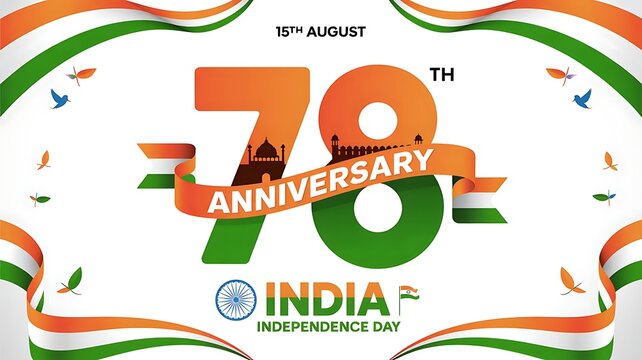 "India Independence Day 78th anniversary poster with vibrant design, flags, and Red Fort"