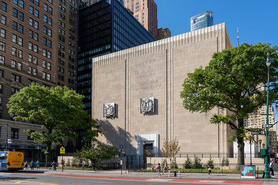 New York City, USA - August 19, 2022: Brooklyn-Battery Tunnel Ventilation Building in New York City, USA.Brooklyn-Battery Tunnel is a tolled tunnel in New York City.