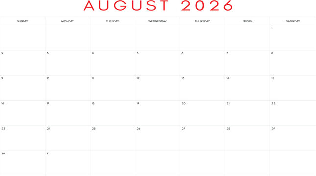 2026 Monthly calendar 12 months template on pink background. Minimalist design layout calendar week starts on sunday. Use for New year, business, print.