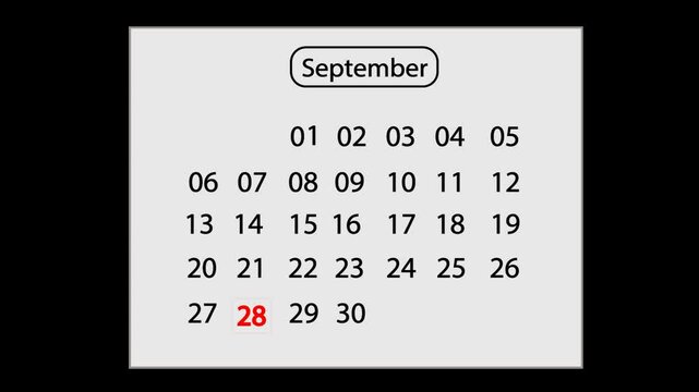 28 September Calendar Animation with Smooth Motion Graphics – Highlight Special Date.