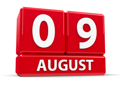 3d rendering of important days concept. August 9th. Day 9 of month. Red date written and pinned on a calendar. Summer month, day of the year. Remind you an important event or possibility.