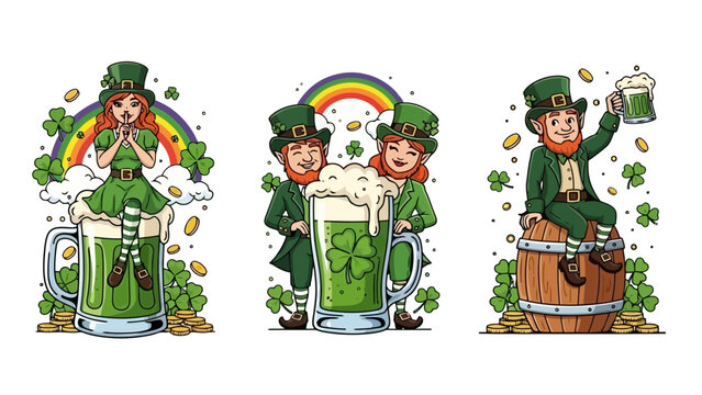 Happy St. Patrick's Day Celebration with Green Clovers and Sparkles