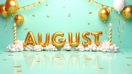 August Text Typography Reveal From Golden Firework Crackers Particles Night Sky 4k Background. Greeting card, Celebration, Party, Invitation, Gift, Event, Message, Holiday, Wish Festival