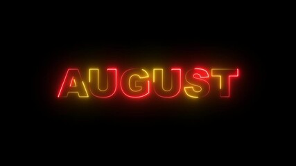 Glowing neon August month text background 4k illustration.