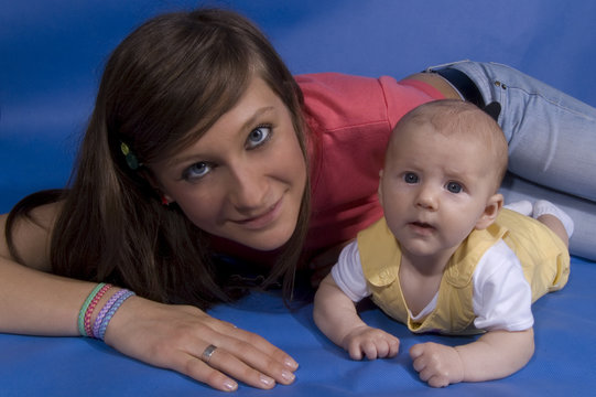 Lovely family time. Older woman smiling and embracing younger girl, auntie holding hand of young child.