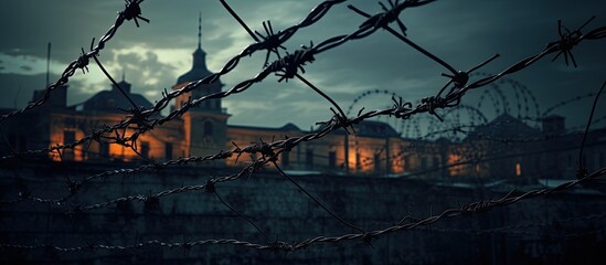 Barracks observed beyond the fencing With copyspace for text