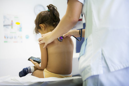 Using Stethoscope to Examine Child - stomach – Pediatric Healthcare