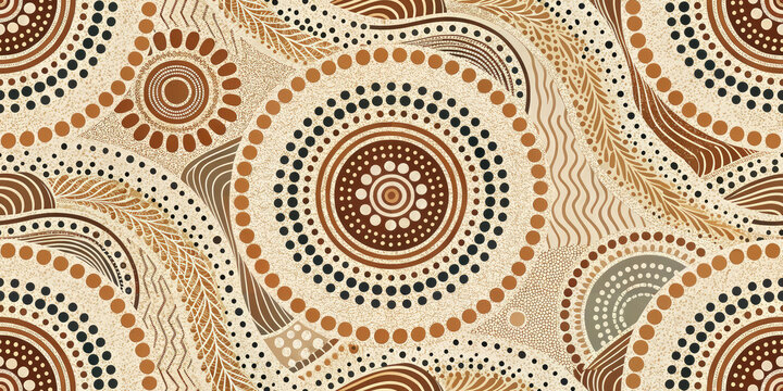 Abstract Australian Aboriginal art with flowing earthy tones