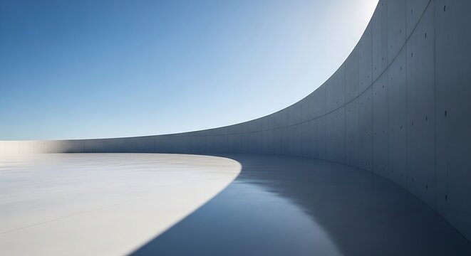 Minimalist curved concrete architecture captured with dramatic light and shadow, featuring a clean, austere