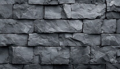 close-up of a rugged stacked grey stone wall made of rough rectangular blocks conveying solidity and austere texture