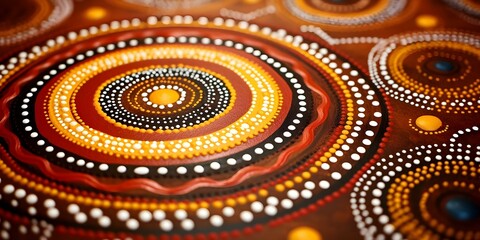 Abstract theme of Australian Indigenous Aboriginal art. Represent style and dot painting techniques. Cultural, traditional art concept.AI abstract image.