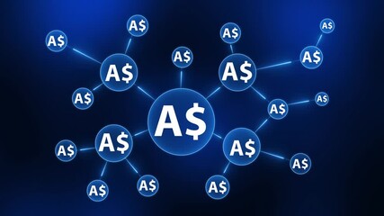 Australian Dollar Currency Symbols Connected in a Network on Dark Blue Background finance