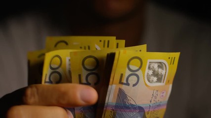 Woman holding Australian Currency - Twenty Dollars of Australia Banknotes