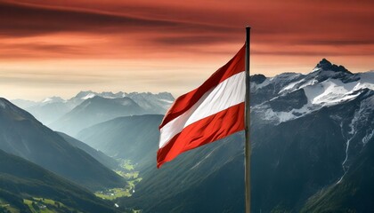 Austria flag waving, national emblem, beautiful red sky