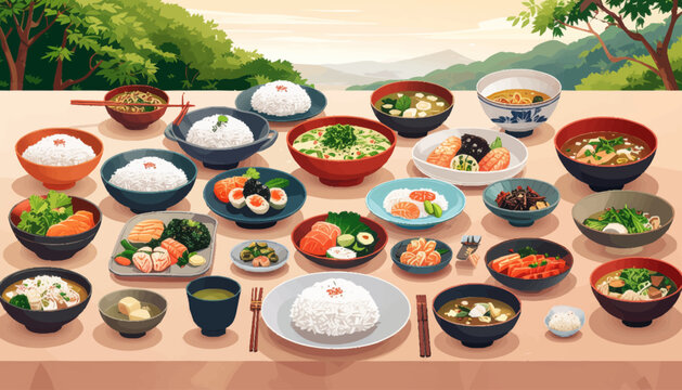 An elegant and culturally rich traditional Japanese banquet, featuring a lavish spread of meticulously prepared authentic gourmet dishes, offering a refined culinary experience