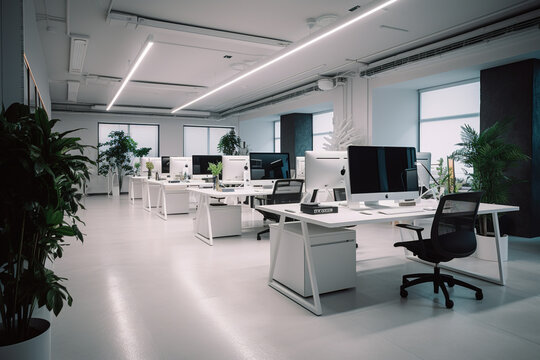 Un bureau moderne Design d'intérieur Vue de l'ensemble du bureau, generative ai