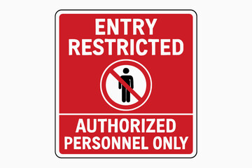 Entry restricted, authorized personnel only sign. printable warning sticker, banner, board. vector Illustration on red and white background.