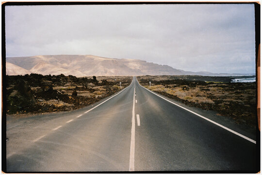 Road crossing the seascape of Caletón Blanco, Lanzarote