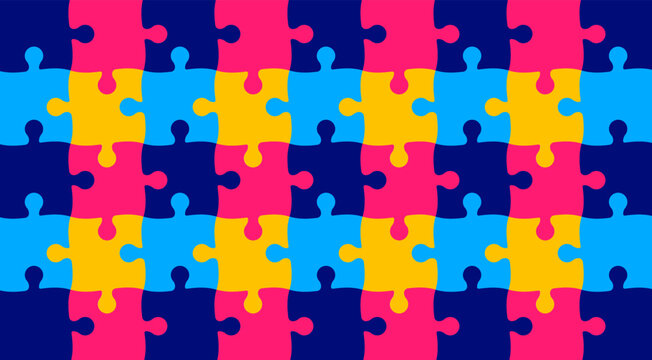 World autism awareness day puzzle pieces pattern background template celebrated in 2 April. use to banner, card, greeting card, poster, book cover, placard, frame, social media post banner template.