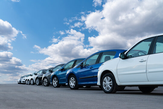A lot of cars in a rows. Used car sales