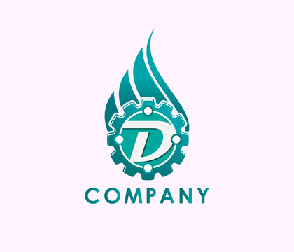 blue fire and gear with letter D design graphic illustration, usable logo for industrial. engineering. automotive