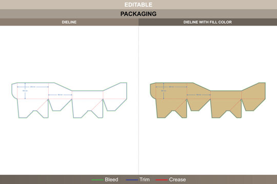 Display tray box dieline created through precise vector tracing supporting clear printing layout and durable packaging base auto lock die line fold stabilizes tray construction