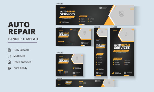 Auto Repair Banner, Auto Repair Social Media Banner, Auto Repair Roll Up Banner