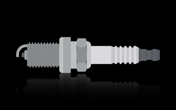Spark plug for motorbike or car spare parts spark plug, flat cartoon illustration background, black
