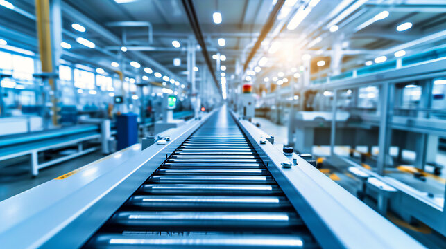 Automated factory production: An automated factory production line with machinery and conveyor belts, symbolizing modern manufacturing