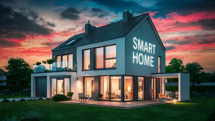 Digital modern residential house , showcasing innovative and automated solutions for a safe.