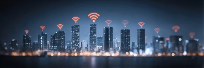 Urban newsletter design with cityscape background