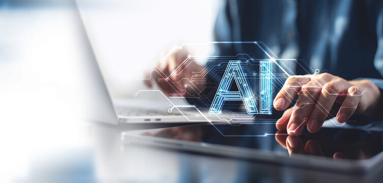 Business professional using computer technology in modern office