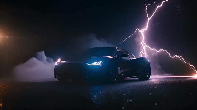 Mysterious Unveiling: A New Car Debut Under Dramatic Lighting