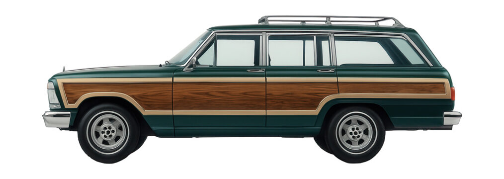 Station wagon with wood-panel siding and roof rack