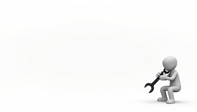 3D stick figure character performing automotive repair, minimalist style, for car maintenance visuals and educational content, with copy space