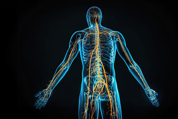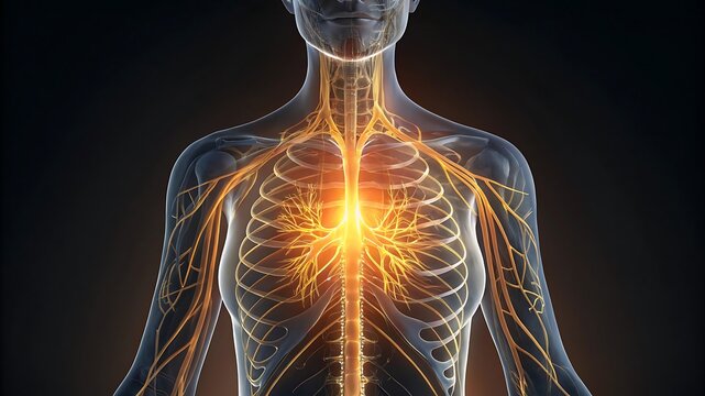 Transparent human neck and chest illustrating vagus nerve activation and acetylcholine release signaling for neuromodulation and autonomic regulation. neuroscience & Medical Technology