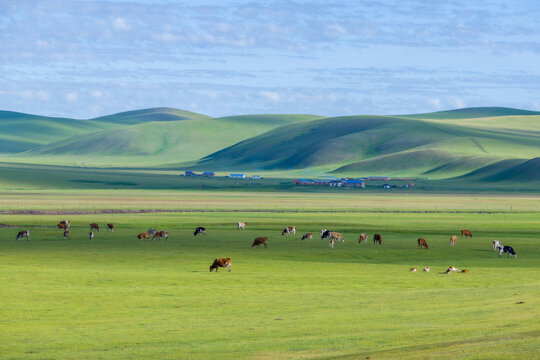 Traditional yurts in summer grasslands within scenic area of Xinjiang Uygur Autonomous Region, highlighting seasonal rural architecture