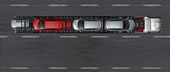 Autotransport LKW auf der Autobahn in Draufsicht