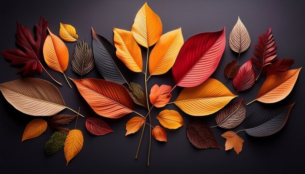 Stylized autumn leaves pile on white background, seasonal beauty