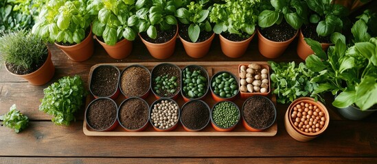 Home Gardening: A Collection of Herbs, Seeds, and Soil Ready for Planting