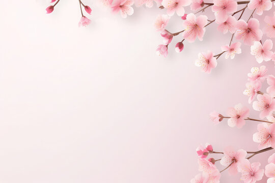 Pink cherry blossoms, autumn spring background.