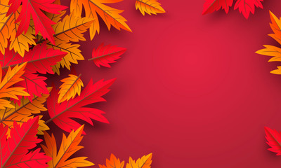 Autumn background design  with watercolor brush texture, Flower and botanical leaves watercolor hand drawing. Abstract art wallpaper design for wall arts, wedding and VIP invite card. vector eps10