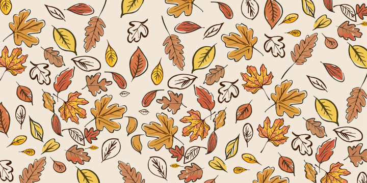 Festive autumn seamless pattern with colorful falling leaves, Warm Thanksgiving vector background with fall foliage