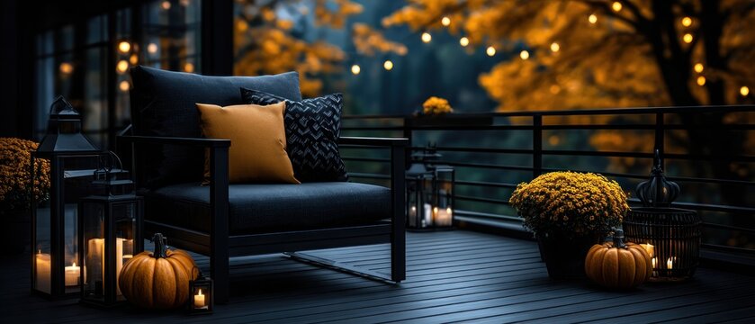 Carved pumpkins are arranged around a glowing candle, creating a warm and welcoming ambiance, pumpkins, autumnal landscape