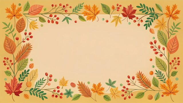 Vibrant Autumnal Floral Frame on Rich Red Background, Perfect for Festive Invitations or Elegant Announcements
