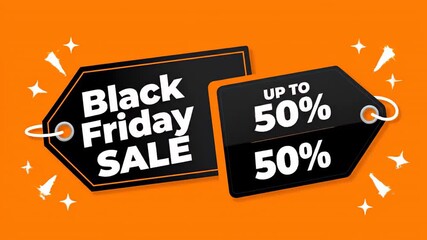 Dynamic black price tag illustration for the Black Friday shopping extravaganza. Eye catching promotion highlighting savings of up to 50 percent available