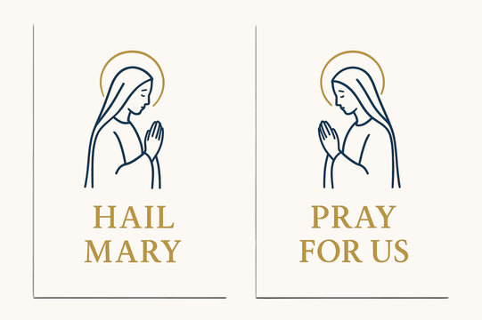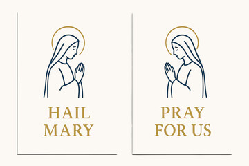 Navy and Gold Banners. Ave Maria. Two vertical A6 banners with safe margins, centered composition, no elements touching edges, minimal, navy and gold, simple